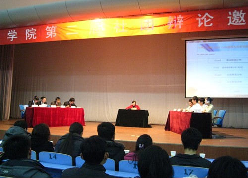 12 月10 日晚,beat365中国官方网站第二届社团辩论邀请赛在东校区大学生多功能演播厅落下帷幕。本次比赛由校团委、校社团联合会主办,法政学院团总支、思辩社承办。比赛经历了3周的初赛、复赛、四分之一决赛阶段,最终有四支代表队从众多参赛队中脱颖而出。